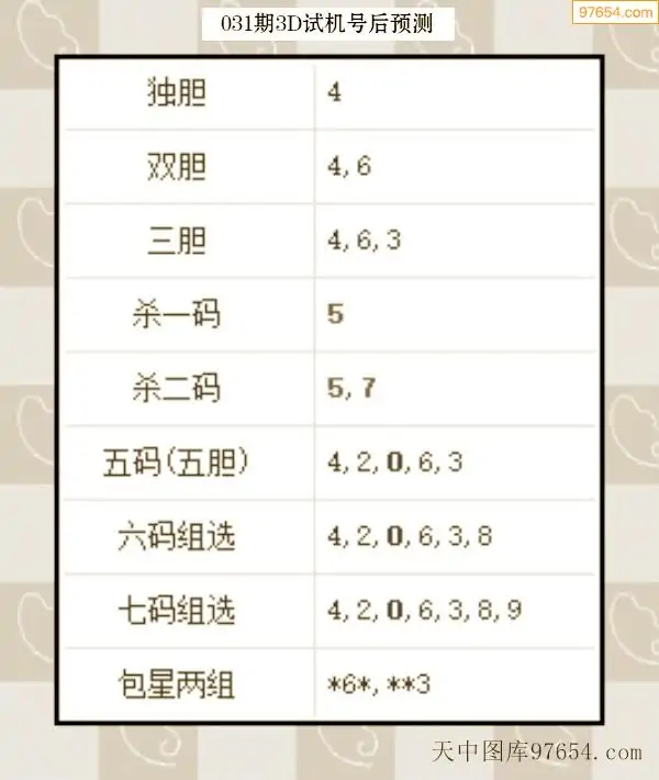 031期西南胆王预测本期3D开奖结果