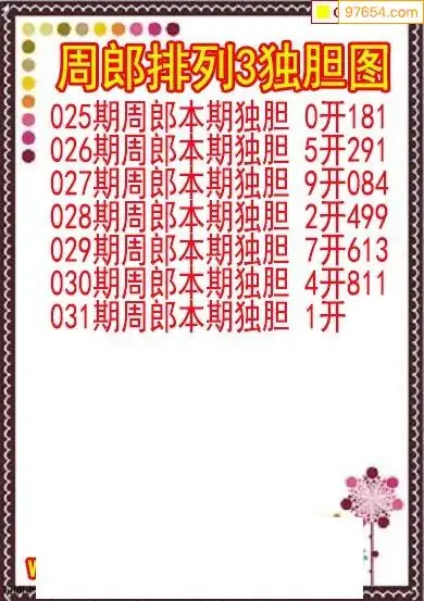 26031期排列3周郎本期独胆图
