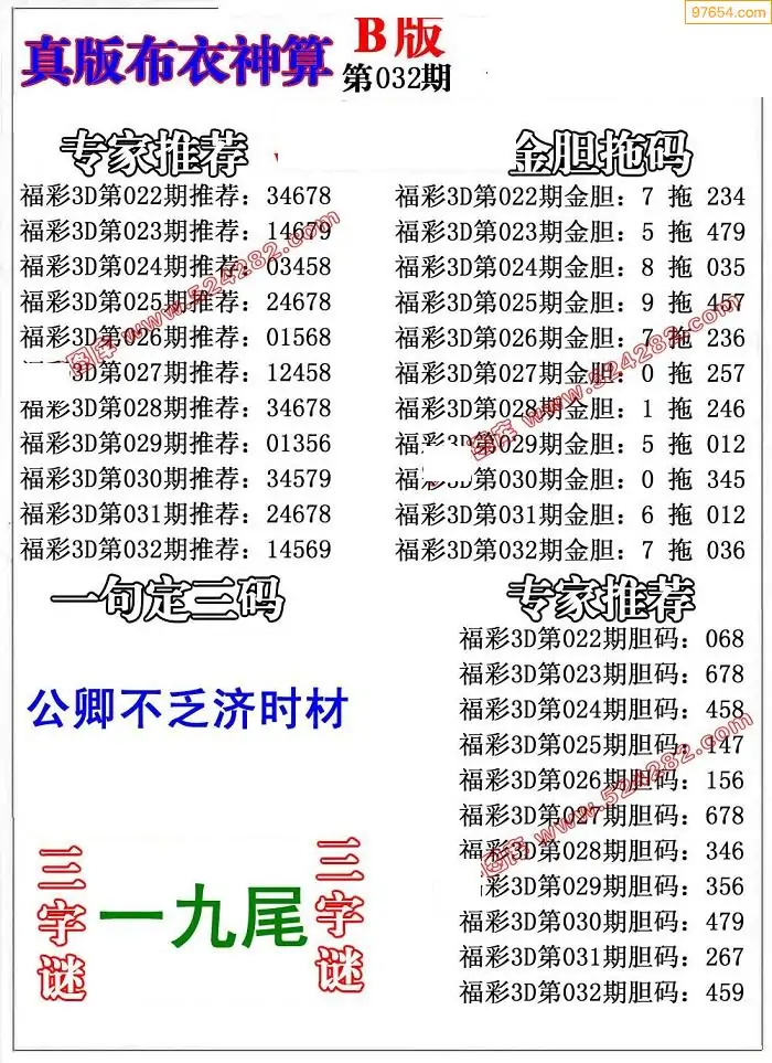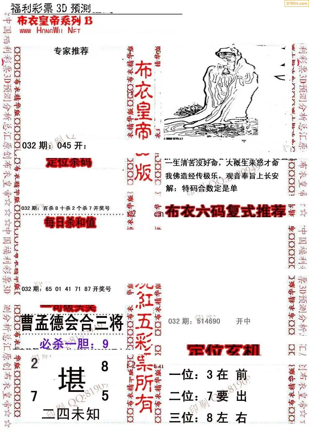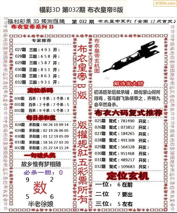 (8)26年031期今日3d各类彩报汇总