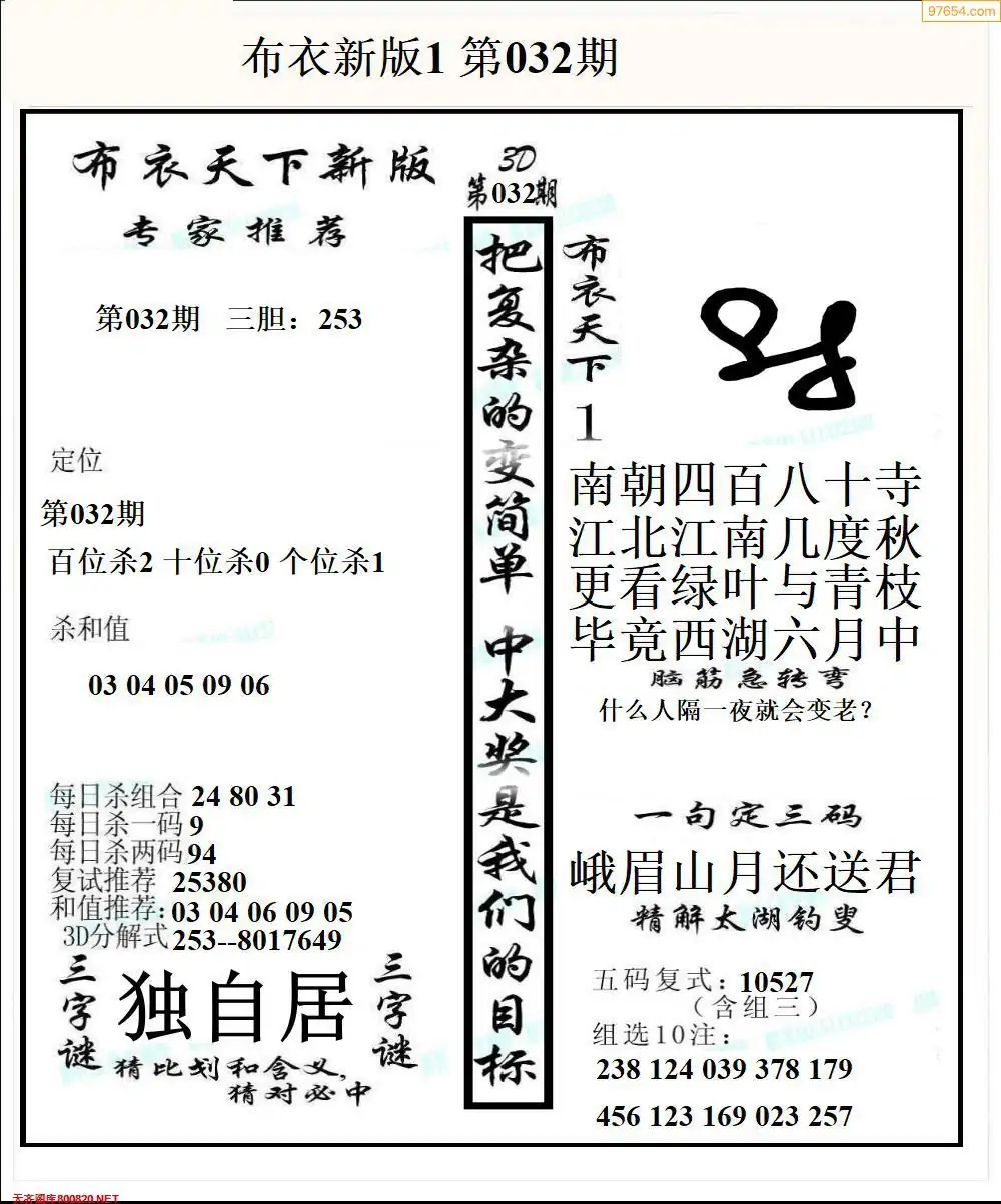 26034期早版布衣天下3D图迷
