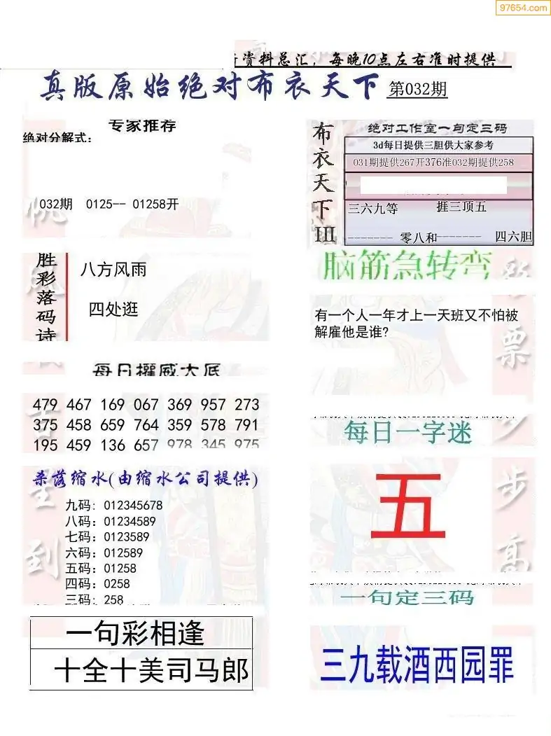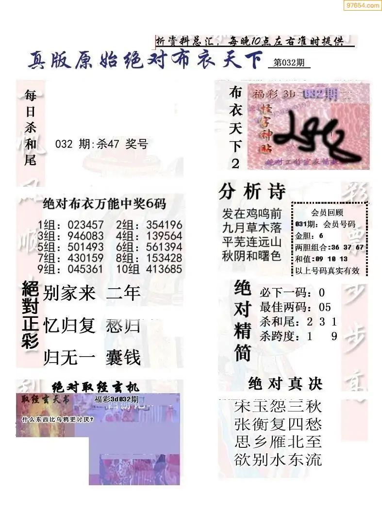 26032期早版布衣天下3D图迷