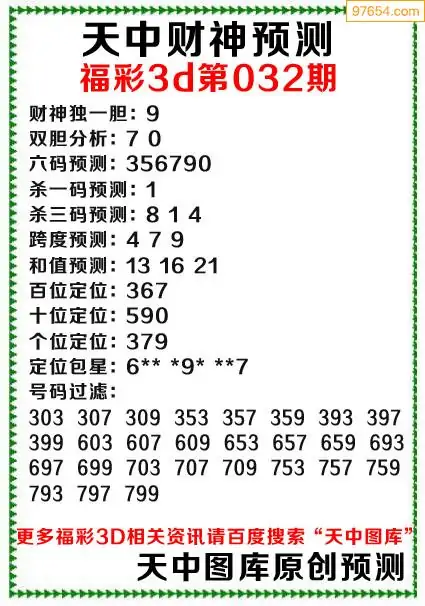032期财神3d综合预测分析