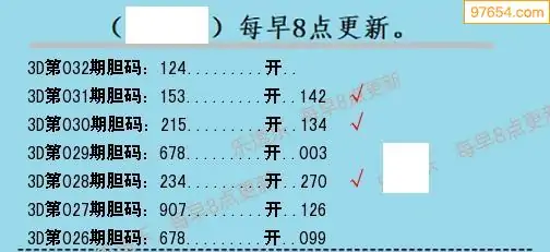 032期97654本站收集胆码出号预测