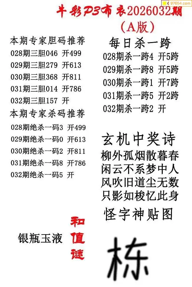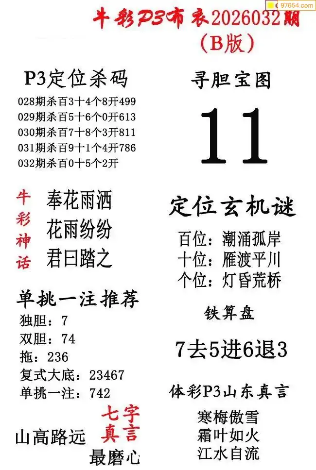 2026年032期北盟天机图+p3仙机图谜 _p3图谜汇总看点