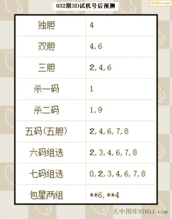 032期西南胆王预测本期3D开奖结果