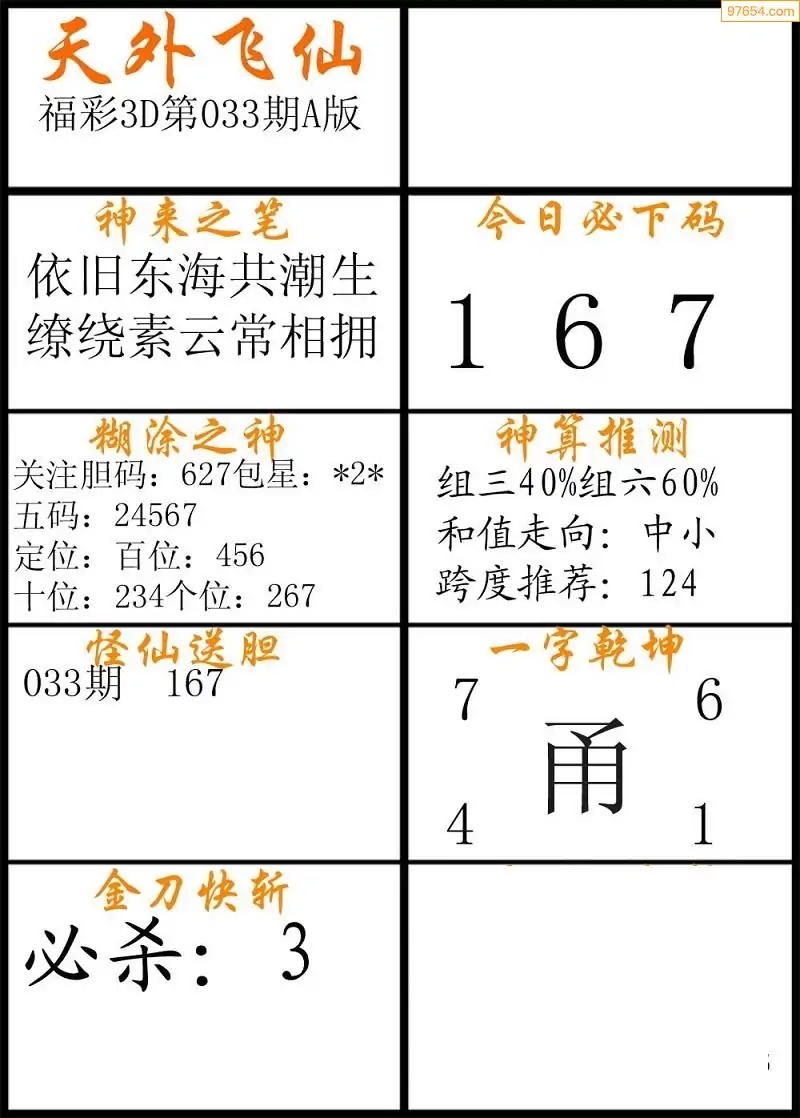 033期福彩3d天外飞仙A版