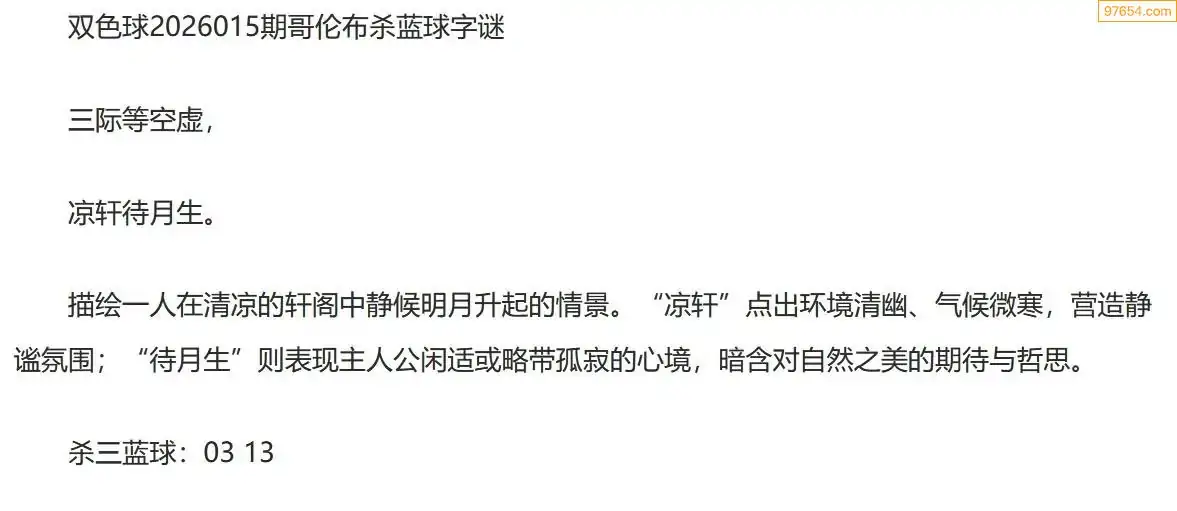 哥伦布双色球26年015期一句杀蓝球字迷