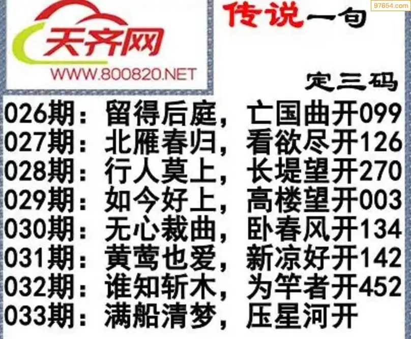 福彩3d26年033期字谜传说一句定三码