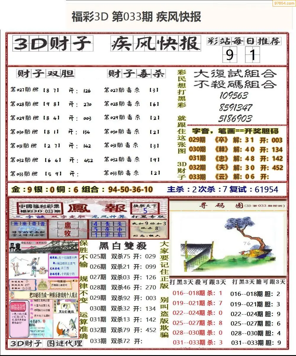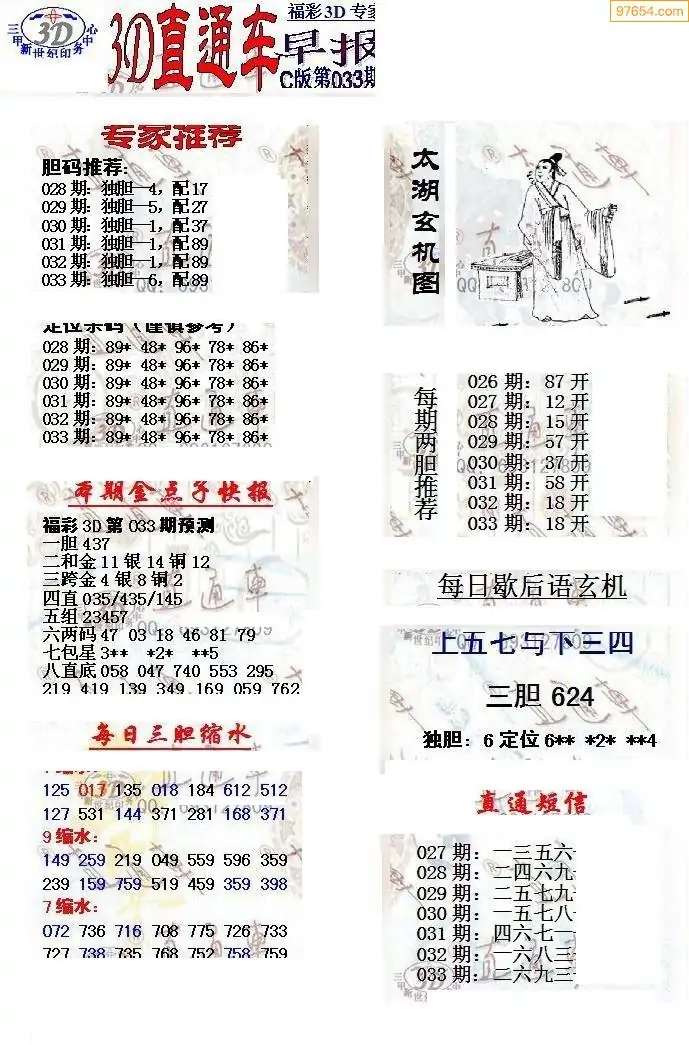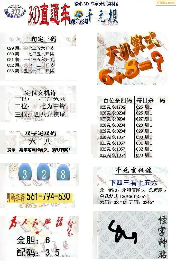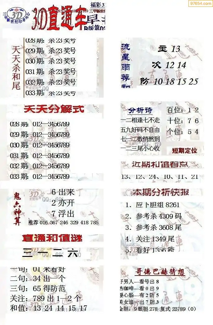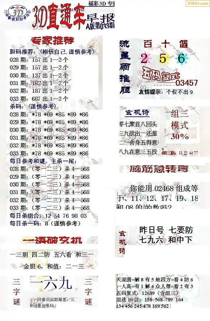 (8)26年033期今日3d各类彩报汇总