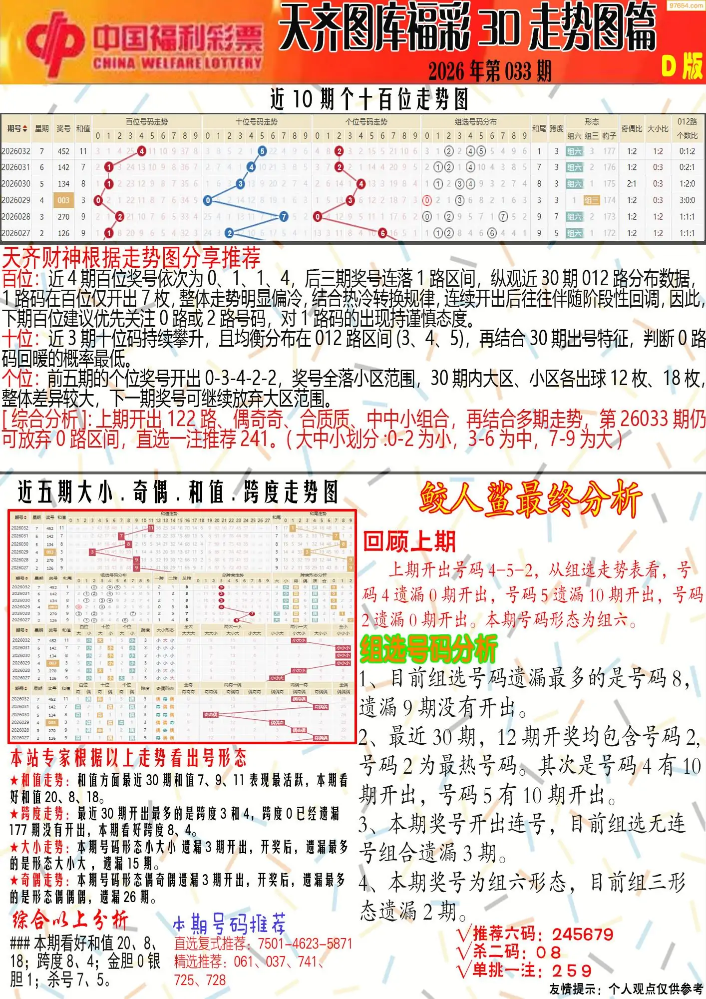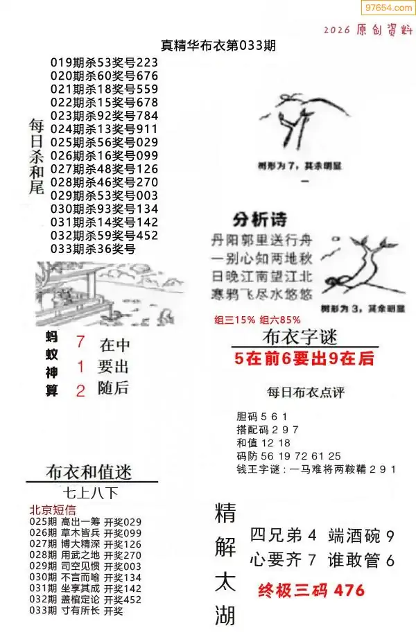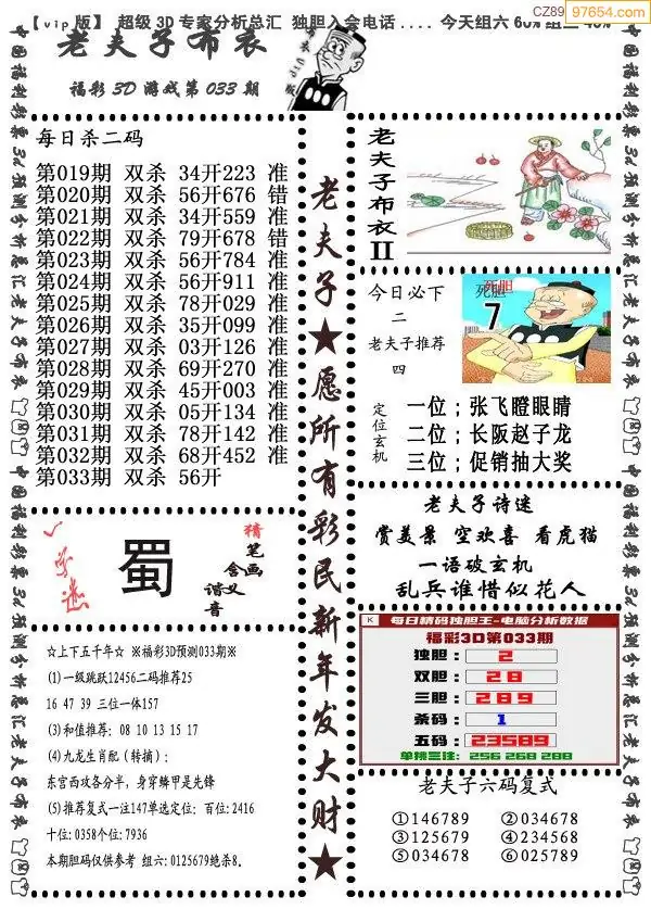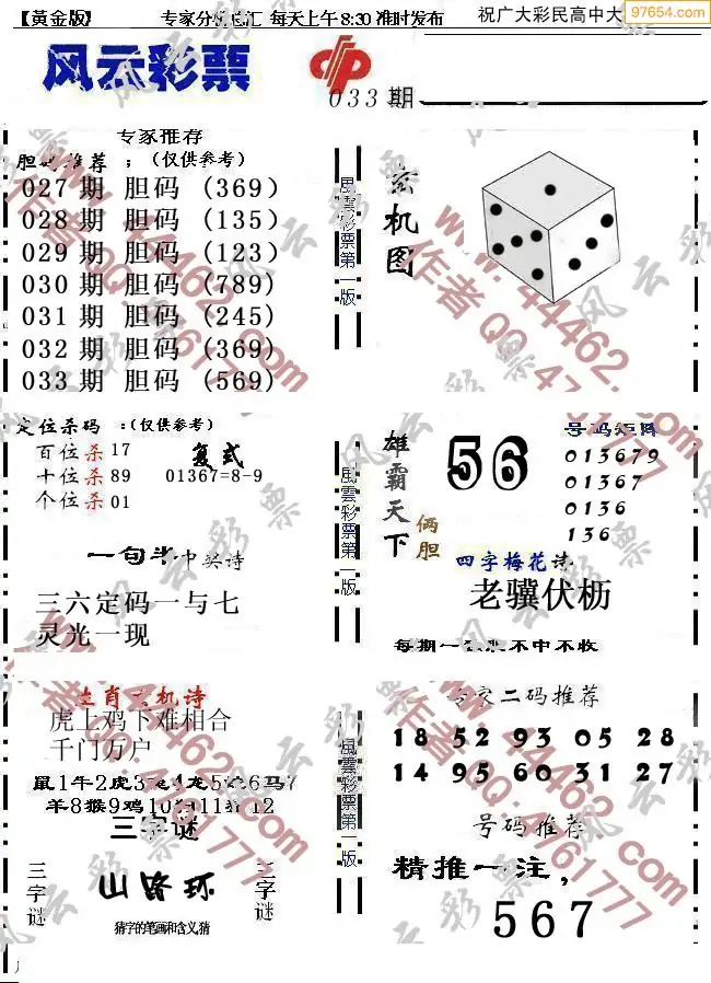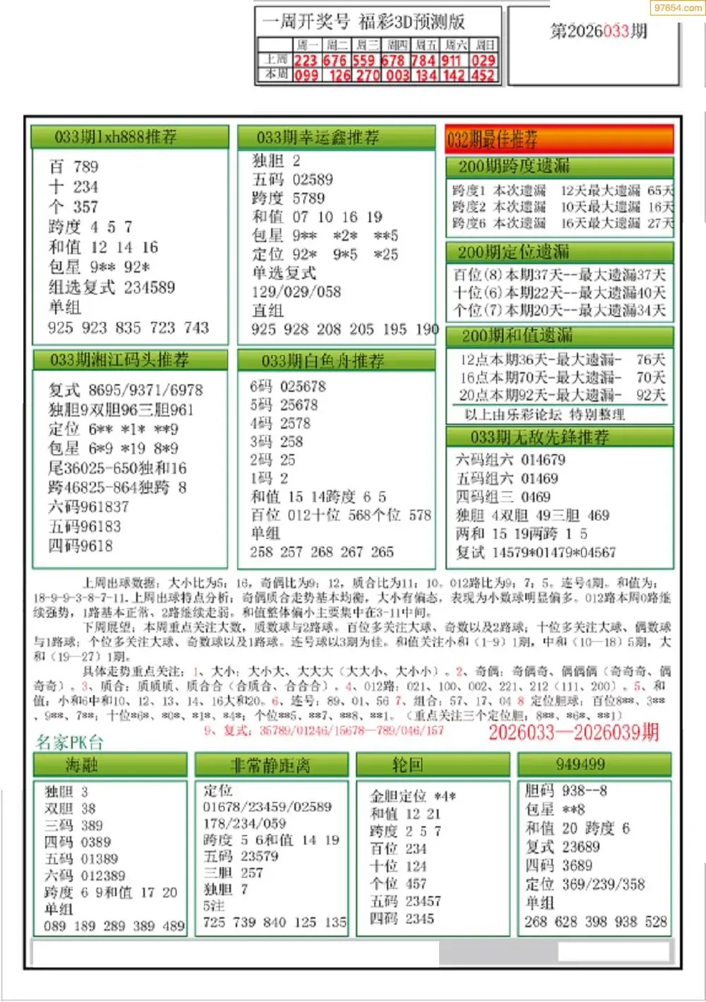 (8)26年033期今日3d各类彩报汇总