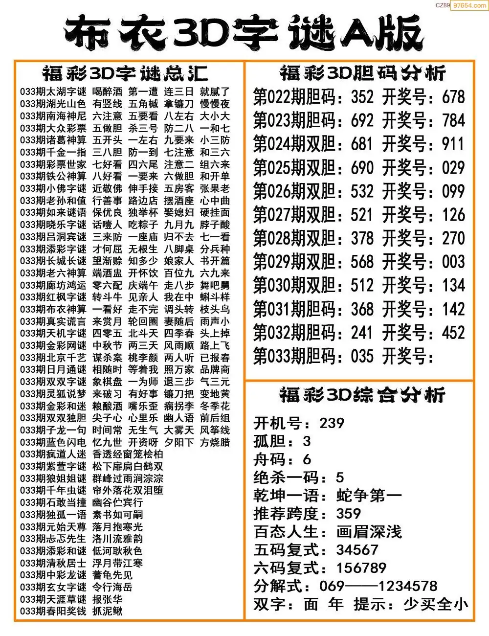 (3)2026033期3D预测总汇全图_福彩3d图谜字谜总汇