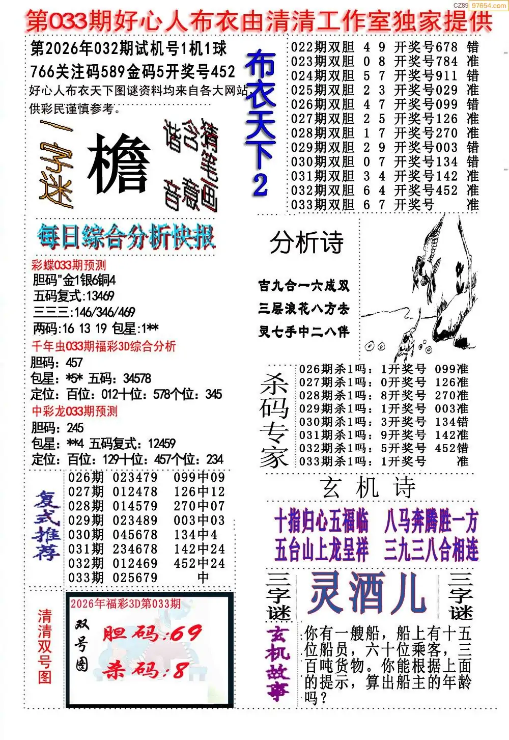 (5)26年033期福彩字谜图谜总汇
