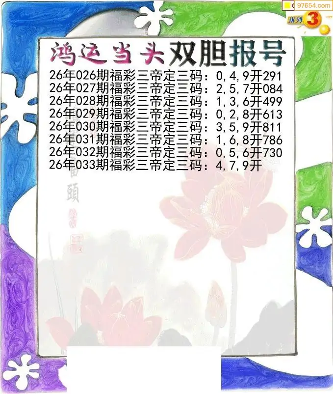 26033期鸿运当头双胆p3报号图