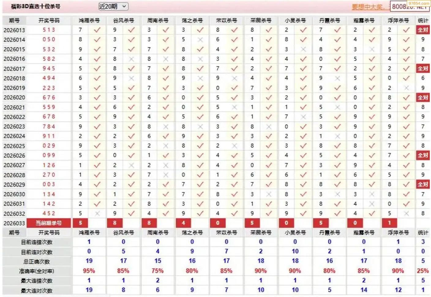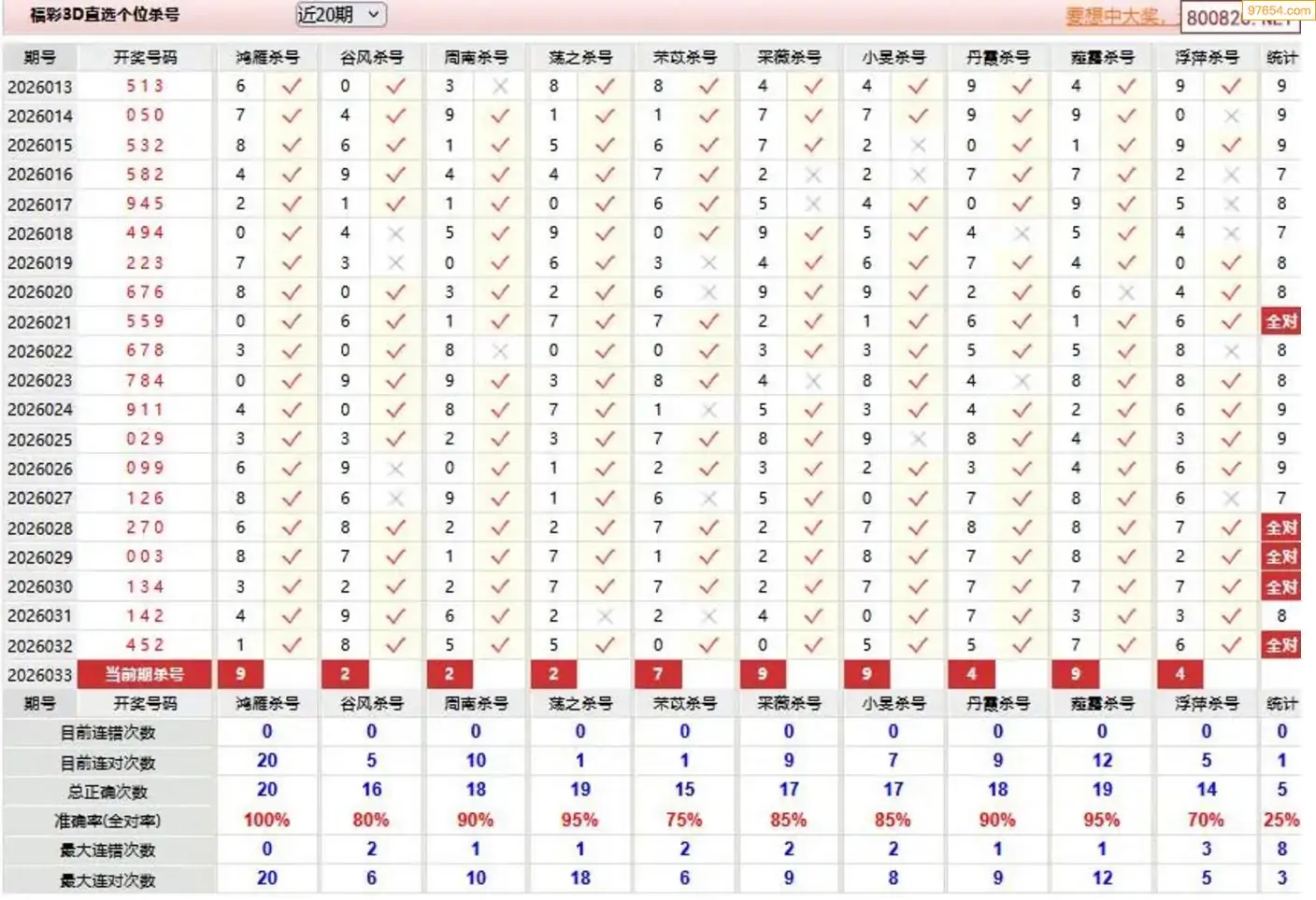 胡八一3d26年033期杀号一胆 9连中