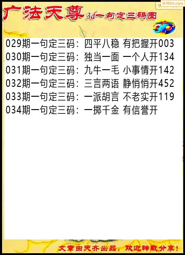 034期97654本站收集胆码出号预测