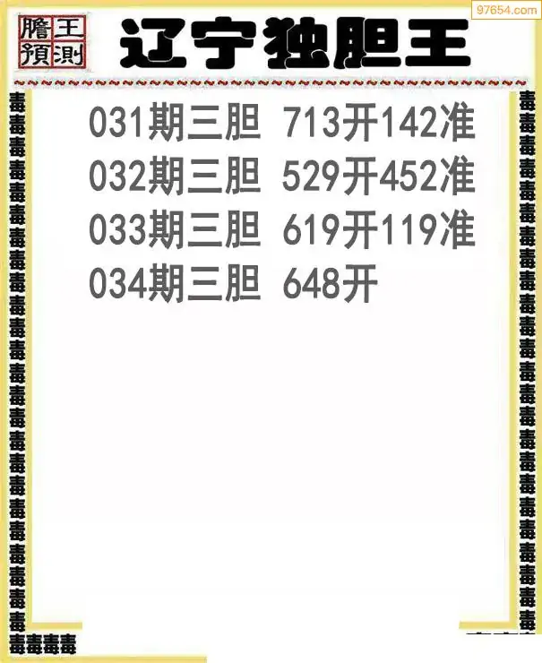 034期97654本站收集胆码出号预测
