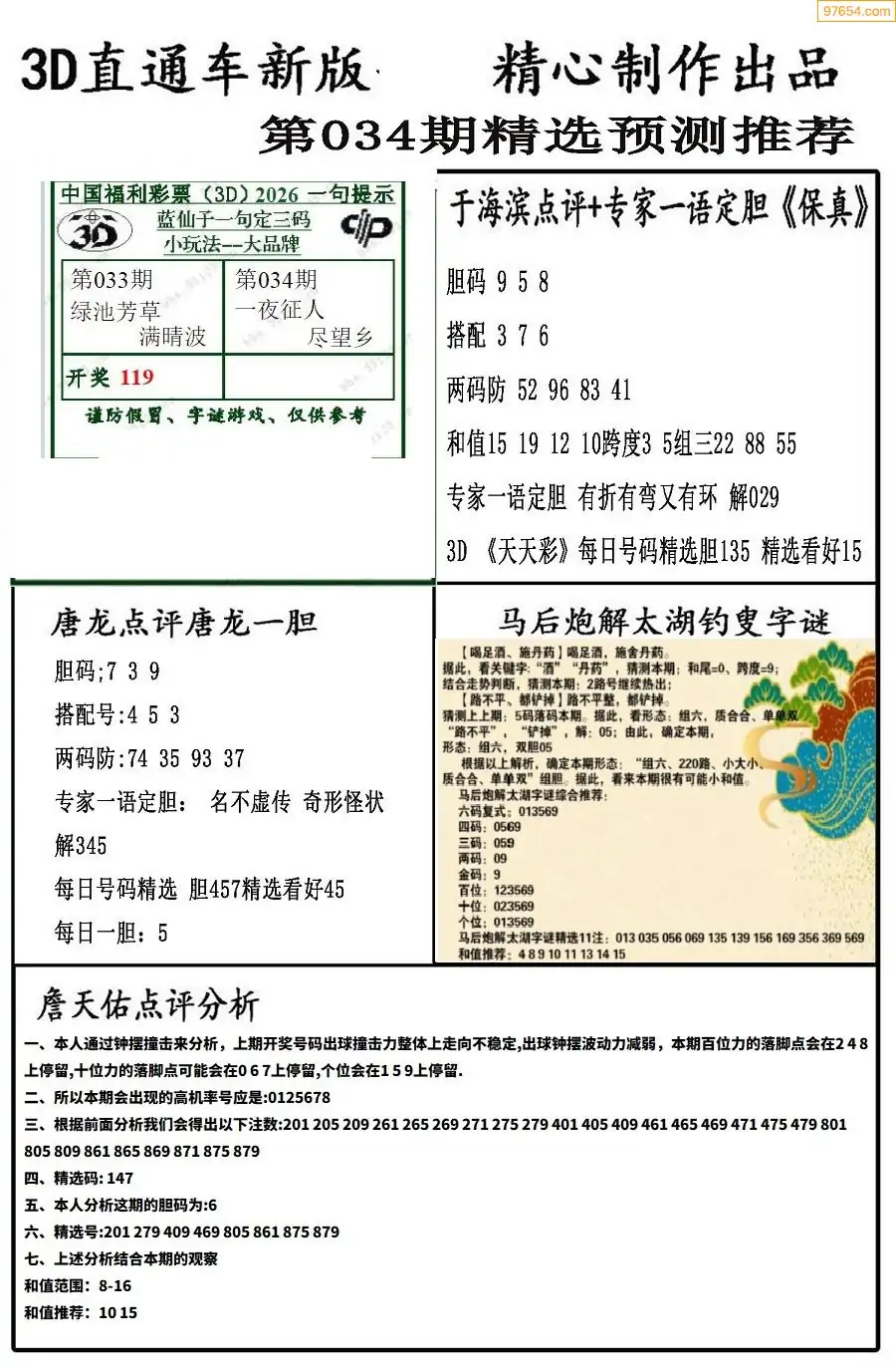 26年036期3D各板块资料整合汇总