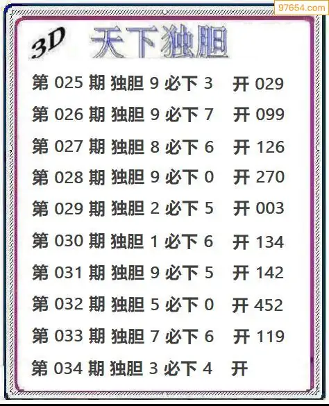 (8)26年034期今日3d各类彩报汇总
