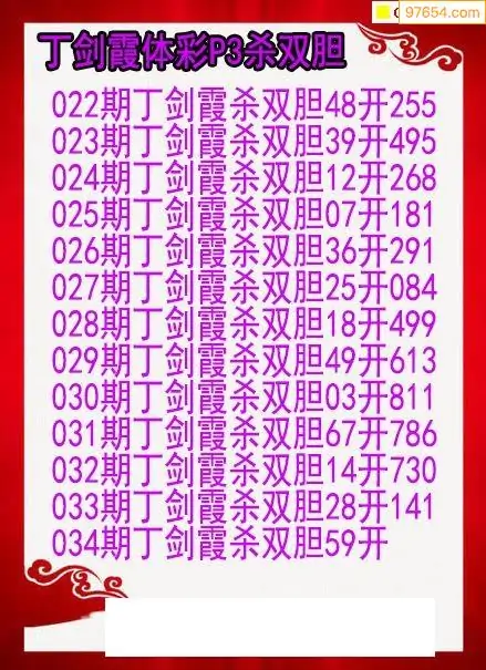 26年034期丁剑霞体彩排列3杀双胆图