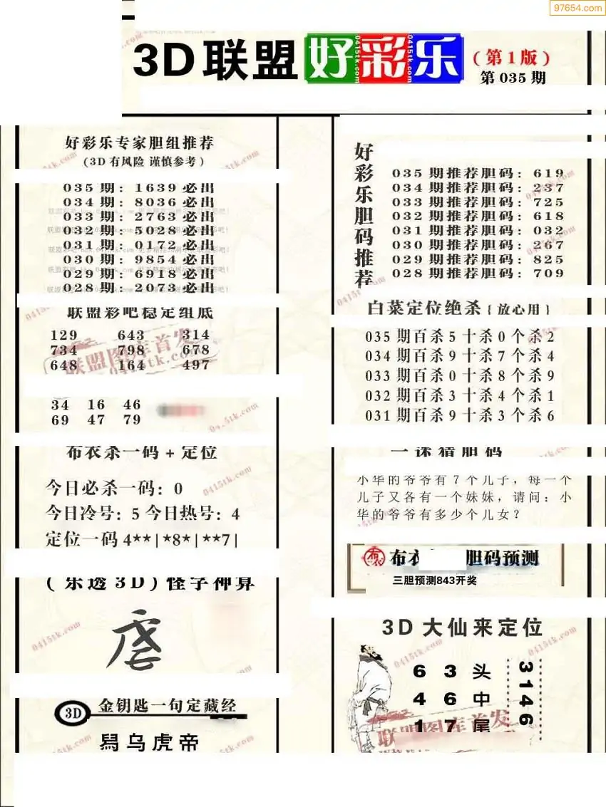 2026035期联盟好彩乐直通车1