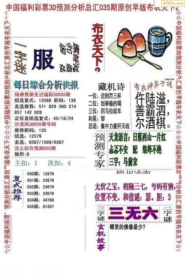福彩035期3d真精华布衣+布衣早报(转载)