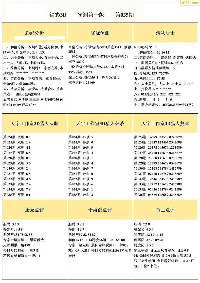 福彩3D035期天牛彩吧套图整合总汇