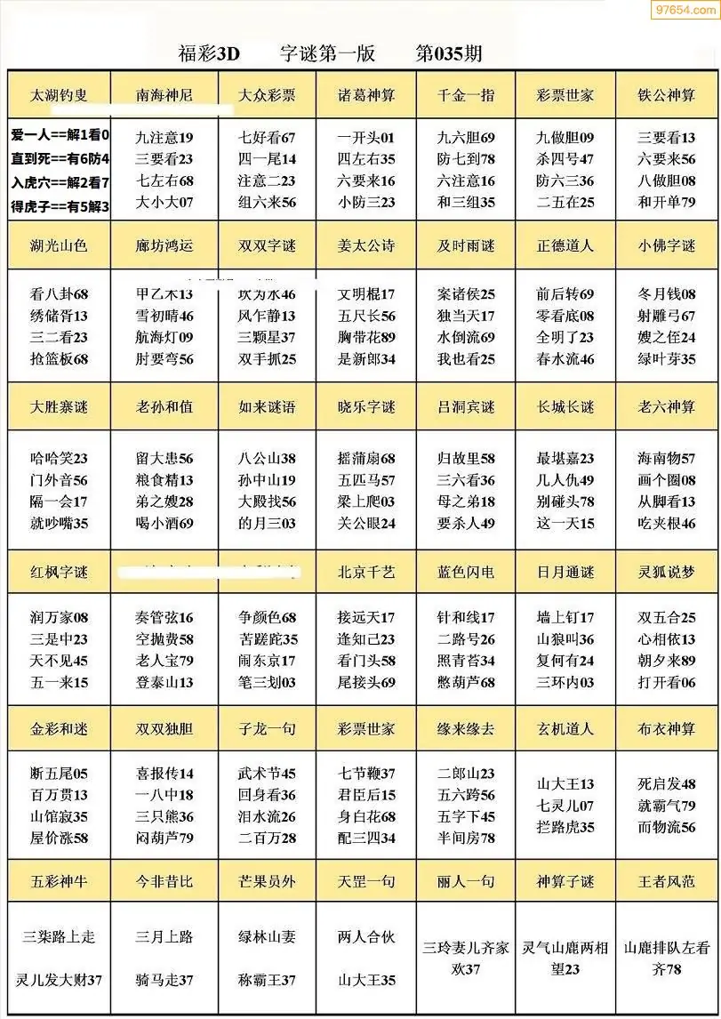 035期3D牛彩预测报+彩吧字谜报