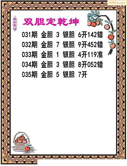 035期97654本站收集胆码出号预测