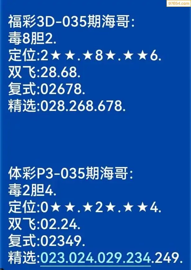 海哥福彩035期3d今日双胆