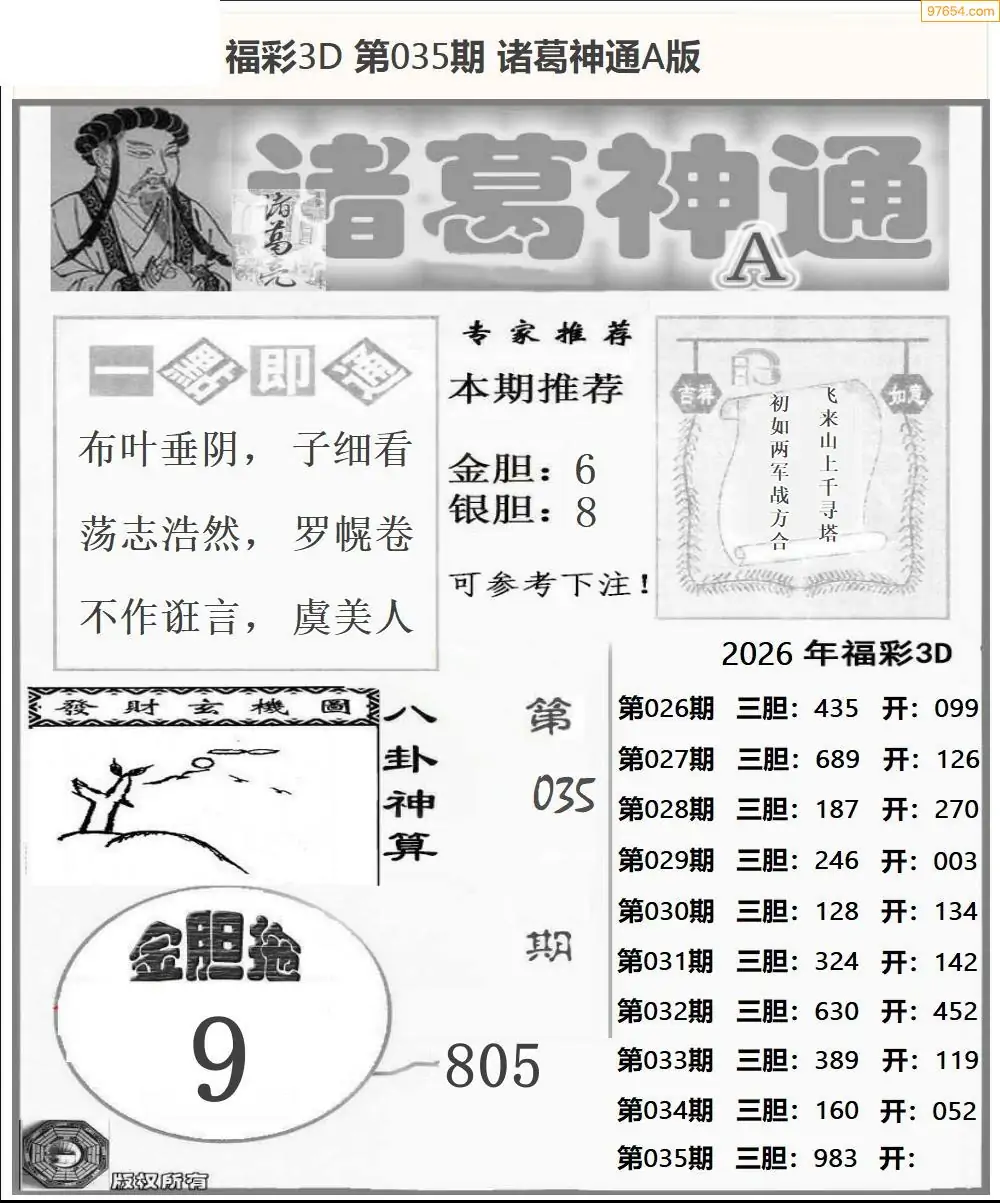 26035期福彩3D诸葛神通a