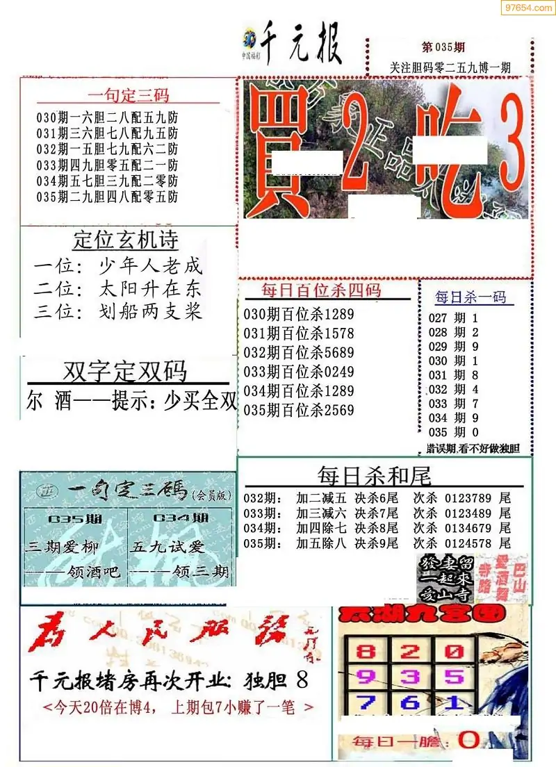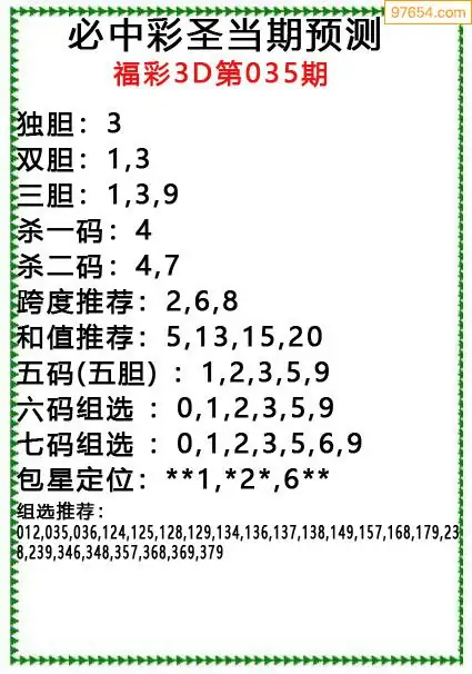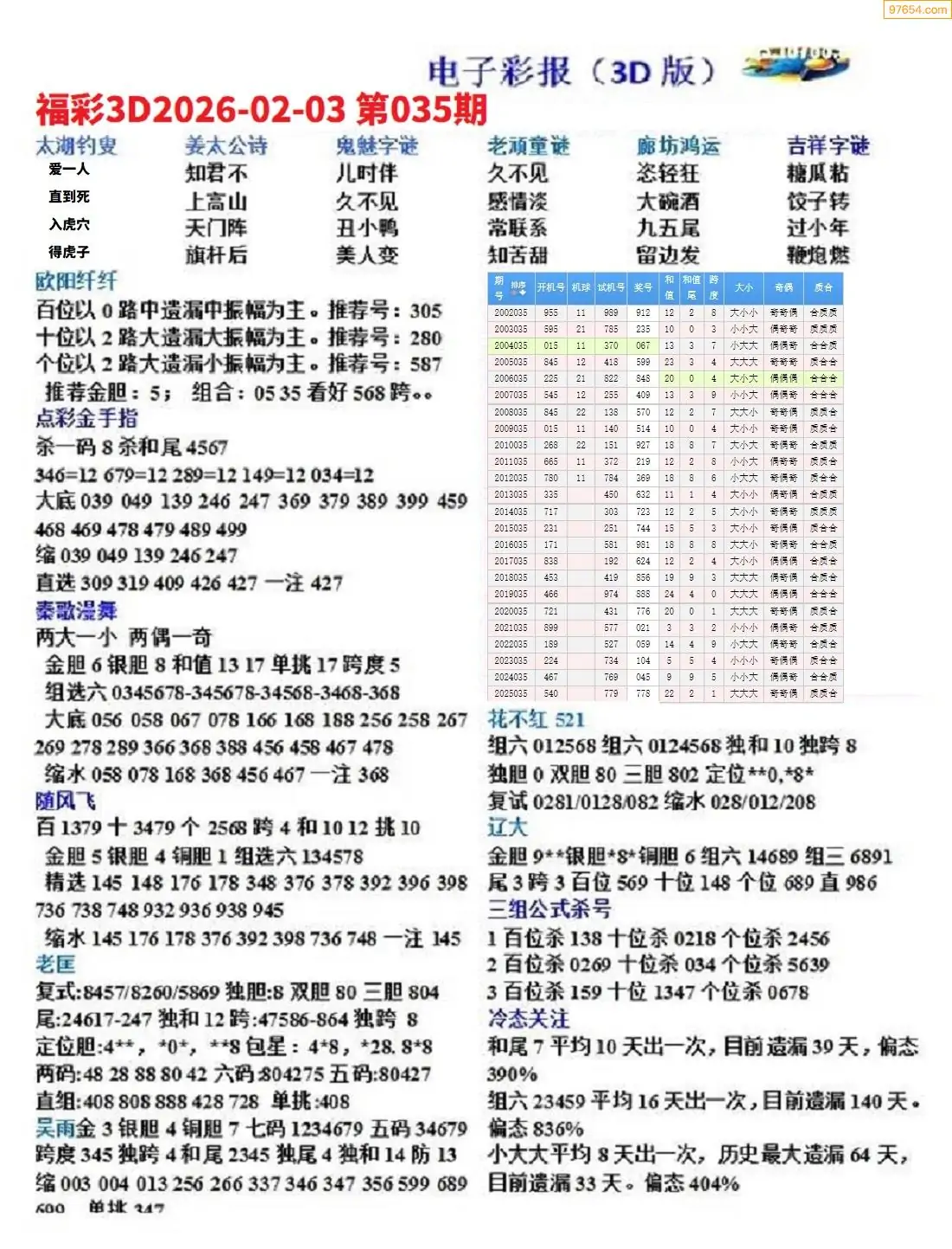 (8)26年035期今日3d各类彩报汇总
