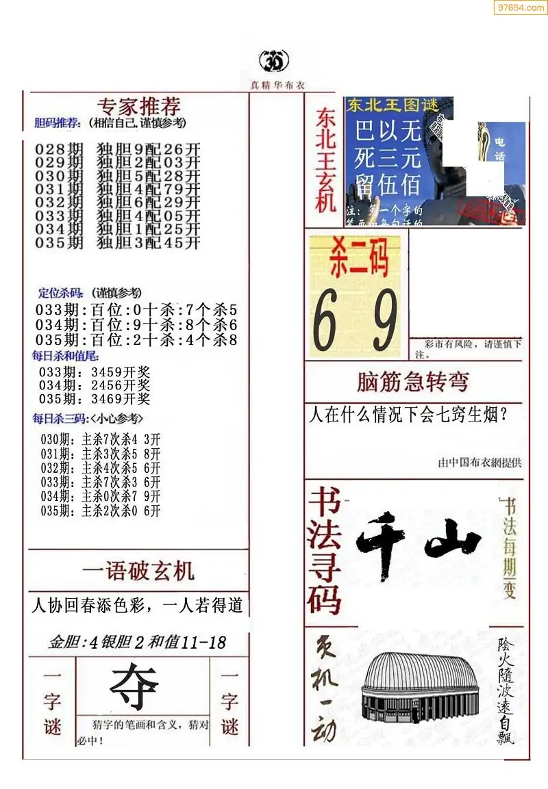 (2)26年035期本期3d图迷汇总_福彩3D图谜总汇图