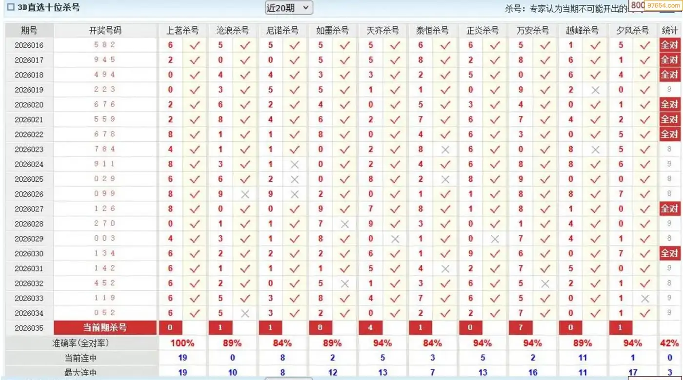 马迷035期3d杀号分享 13连中