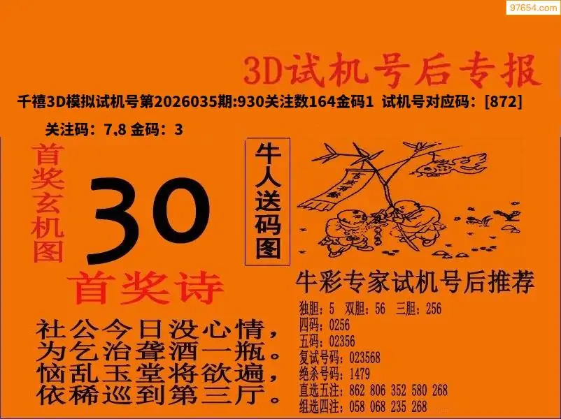 26035期福彩3D试机号后首奖诗