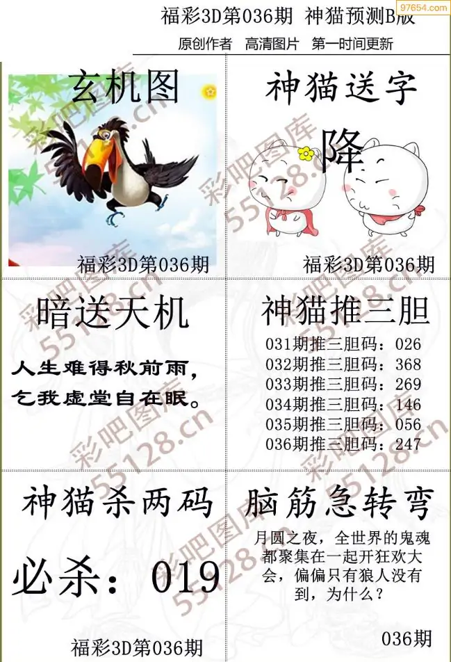 福彩3D036期天牛彩吧套图整合总汇