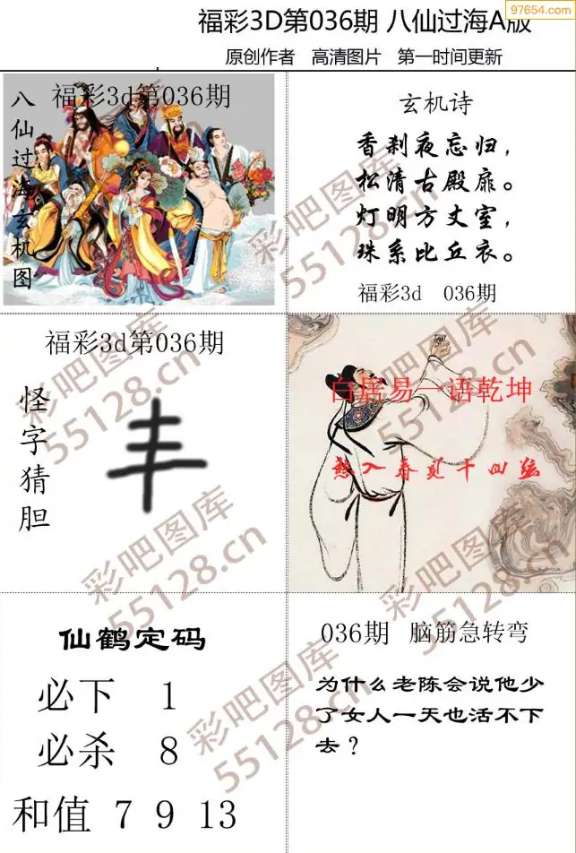 036期福彩天机壁怪字图