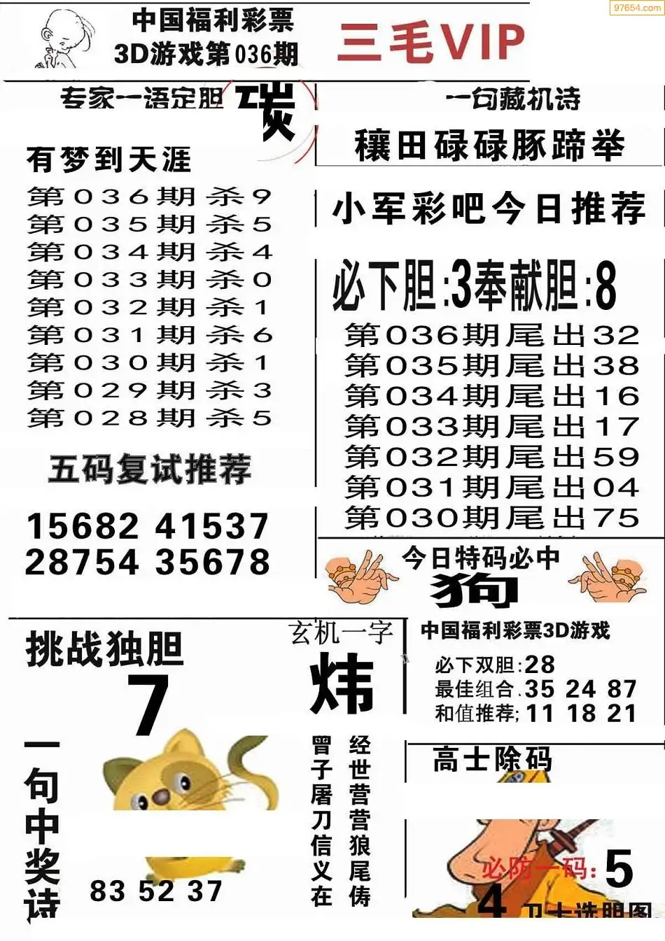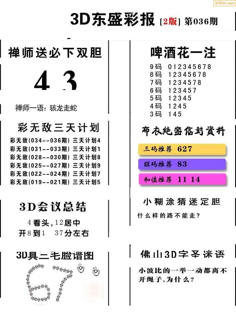 福彩3D036期天牛彩吧套图整合总汇