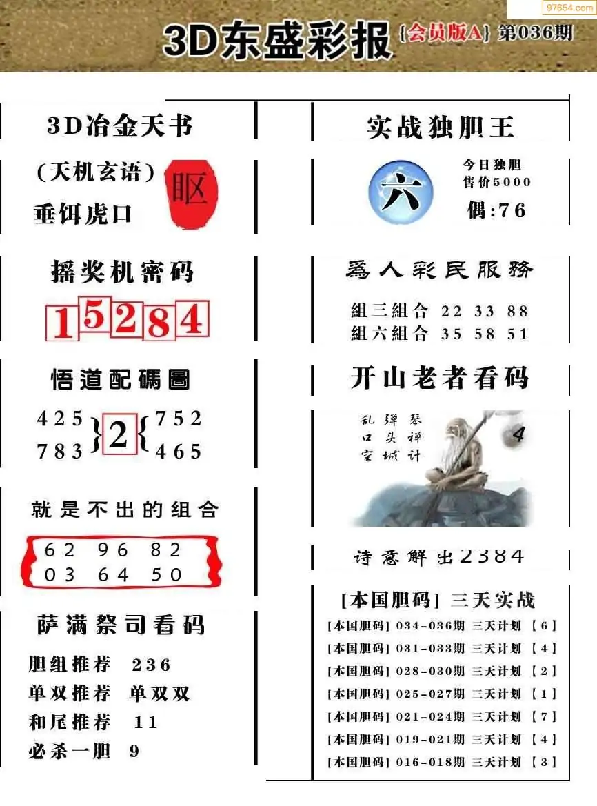 26036期今日3d三毛四版+东盛会员报