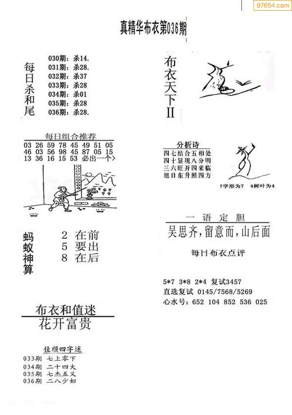 福彩036期3d真精华布衣+布衣早报(转载)
