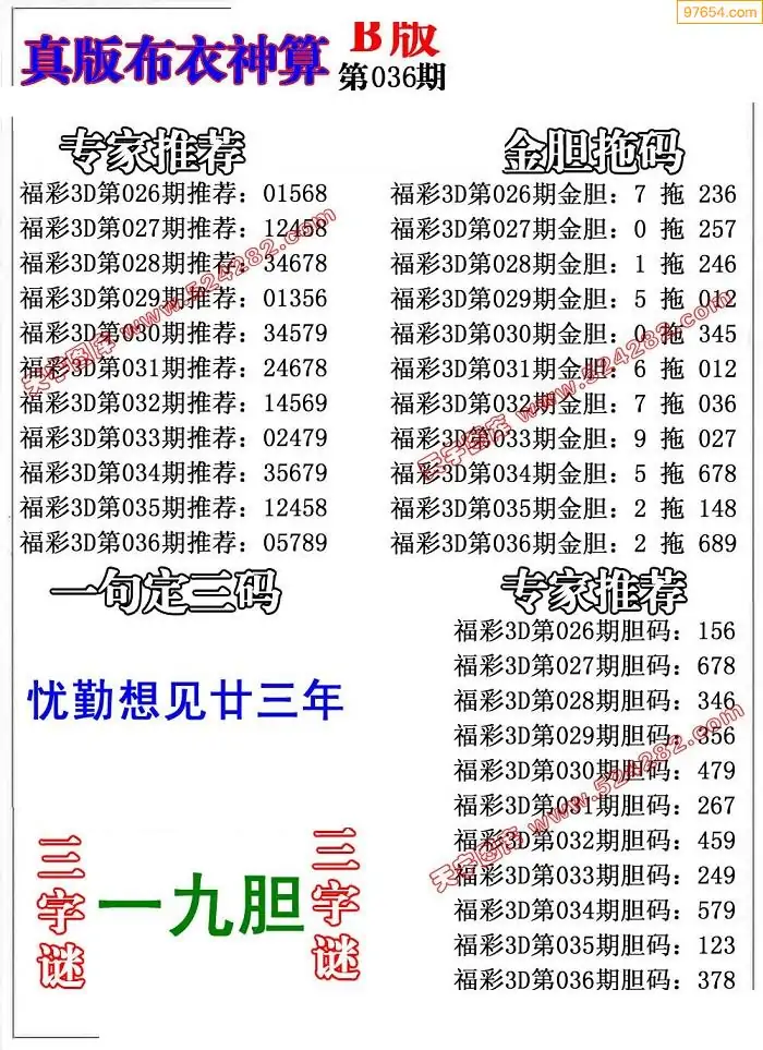 福彩036期3d真精华布衣+布衣早报(转载)
