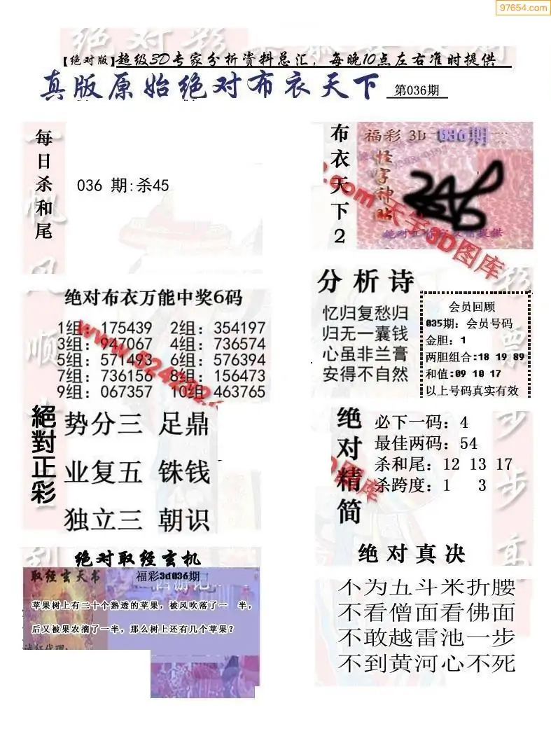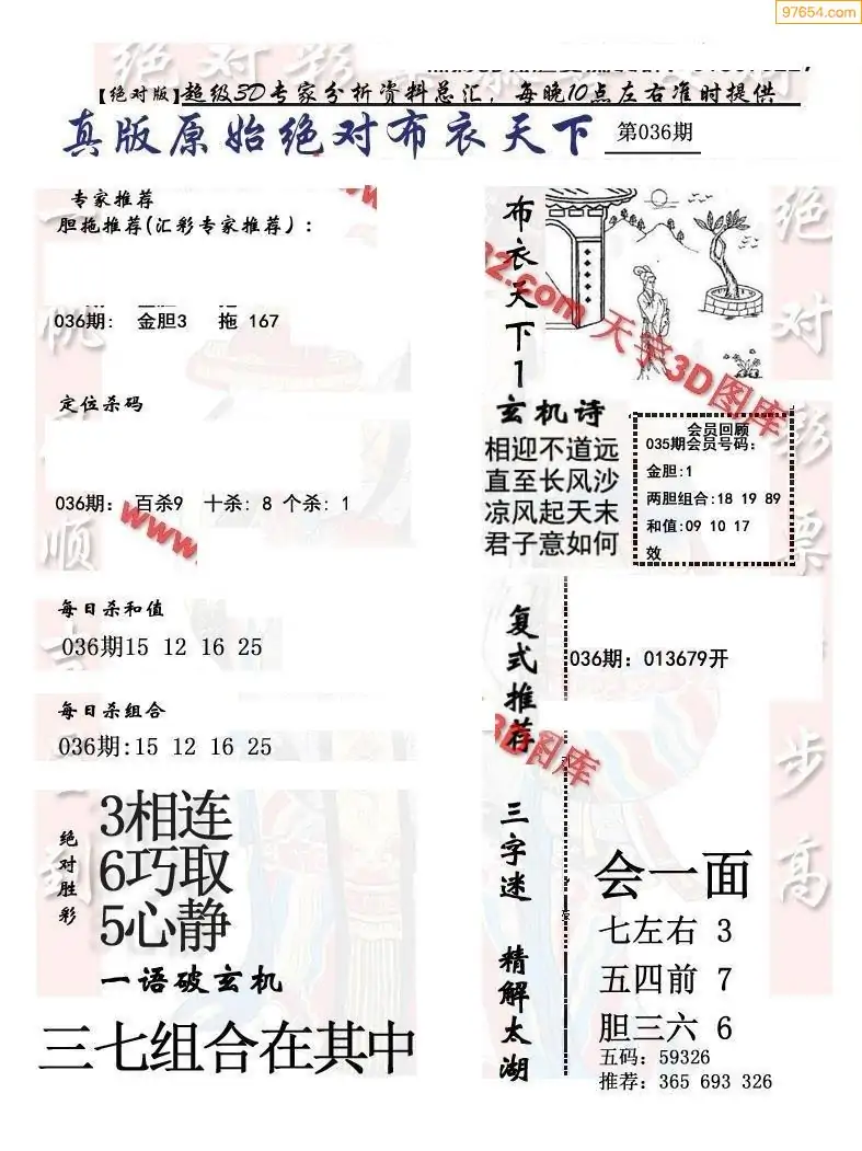 2026036期会员布衣3d图库