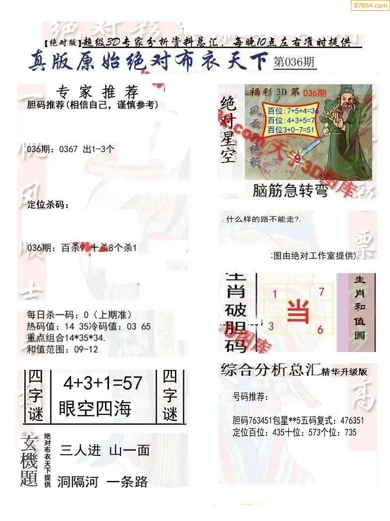 福彩036期3d真精华布衣+布衣早报(转载)