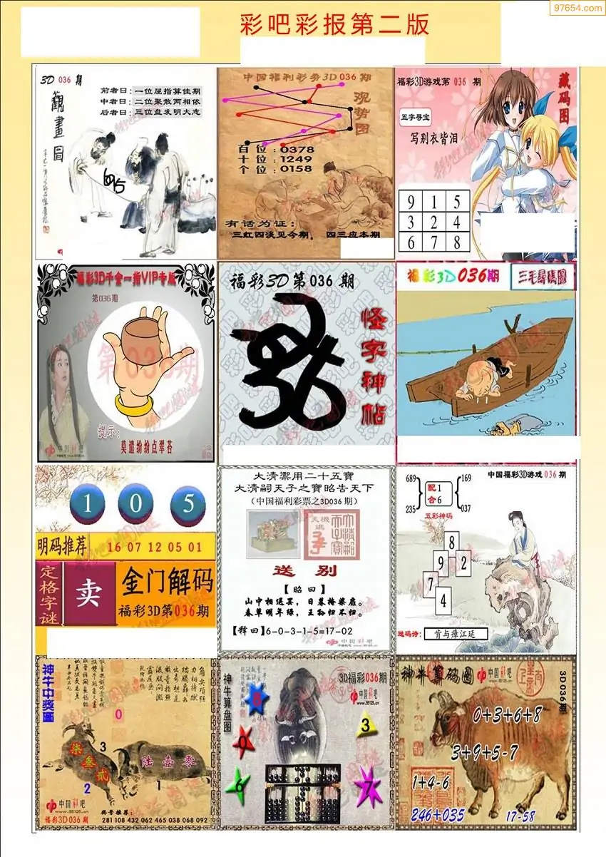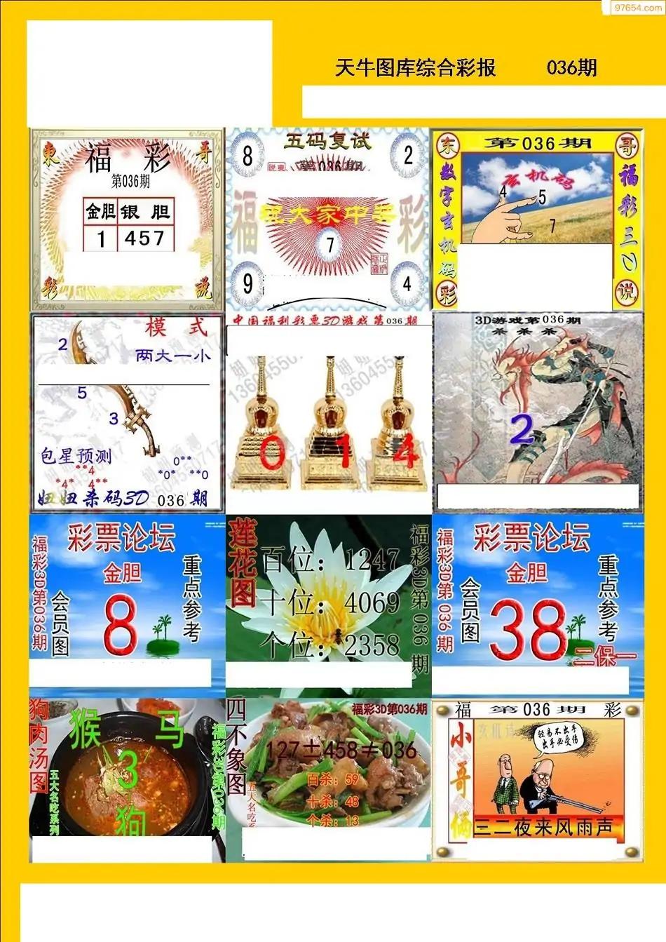 福彩3D036期天牛彩吧套图整合总汇