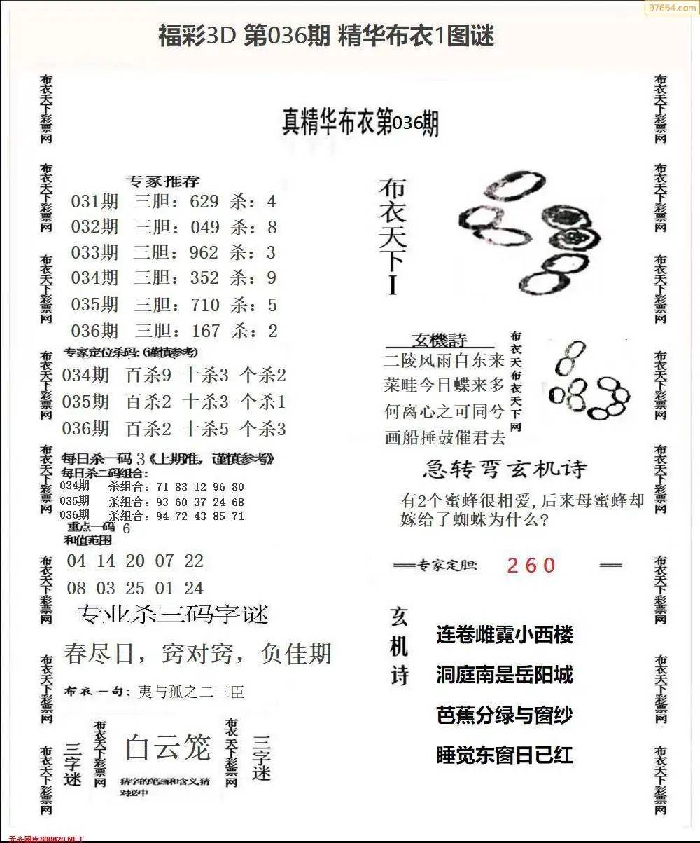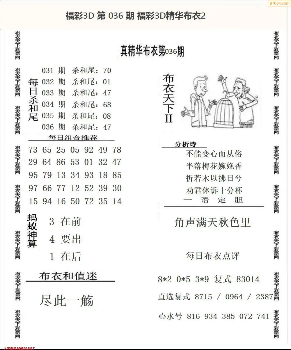 福彩036期3d真精华布衣+布衣早报(转载)