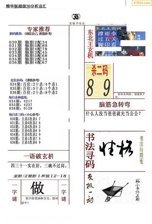 (3)2026036期3D预测总汇全图_福彩3d图谜字谜总汇