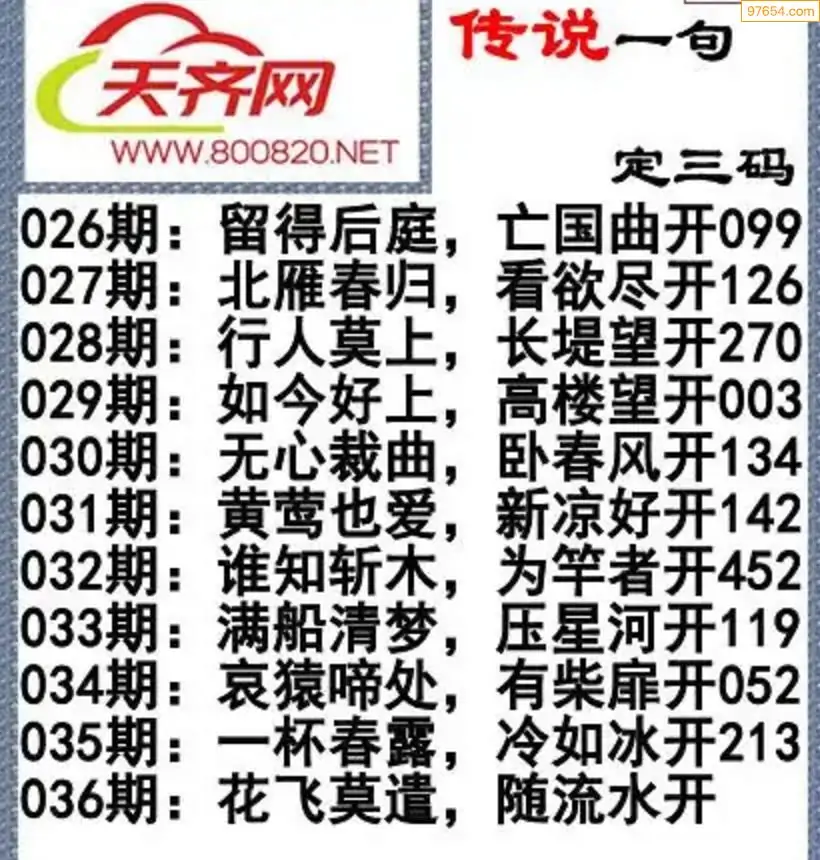 福彩3d26年036期字谜传说一句定三码