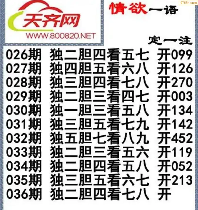 福彩3D26036期蓝仙子一句定三码
