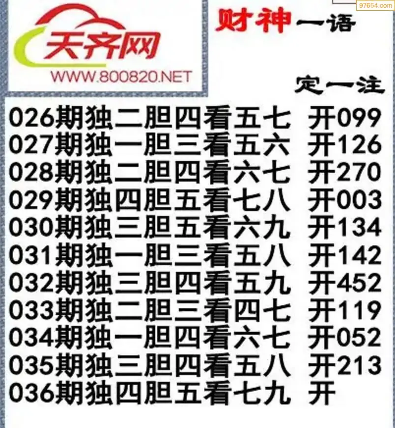 26年036期3D诗歌财神一语定一注