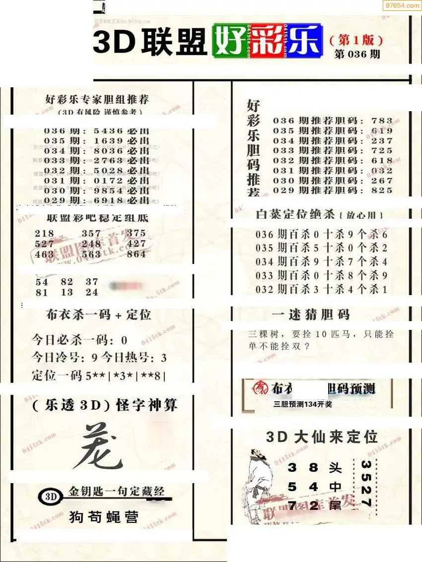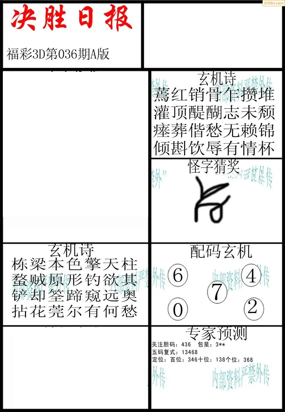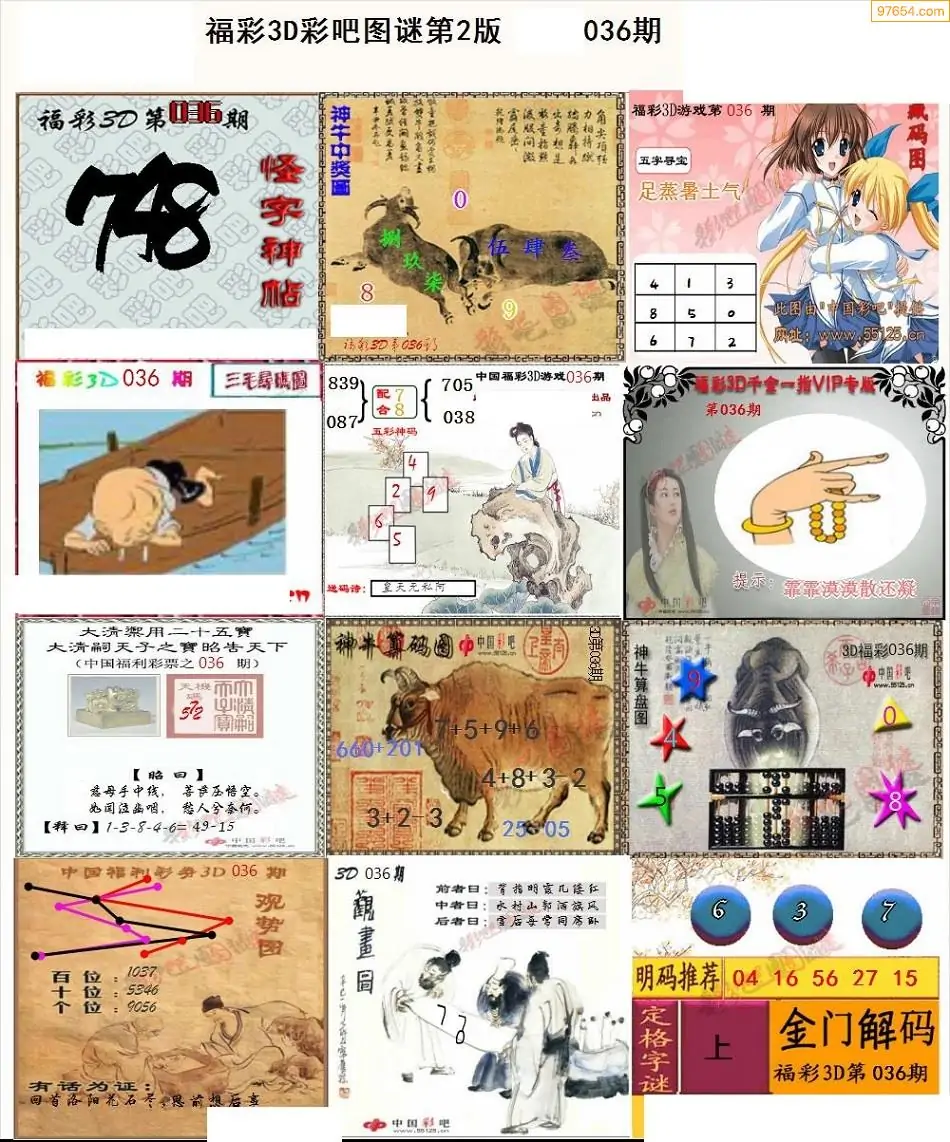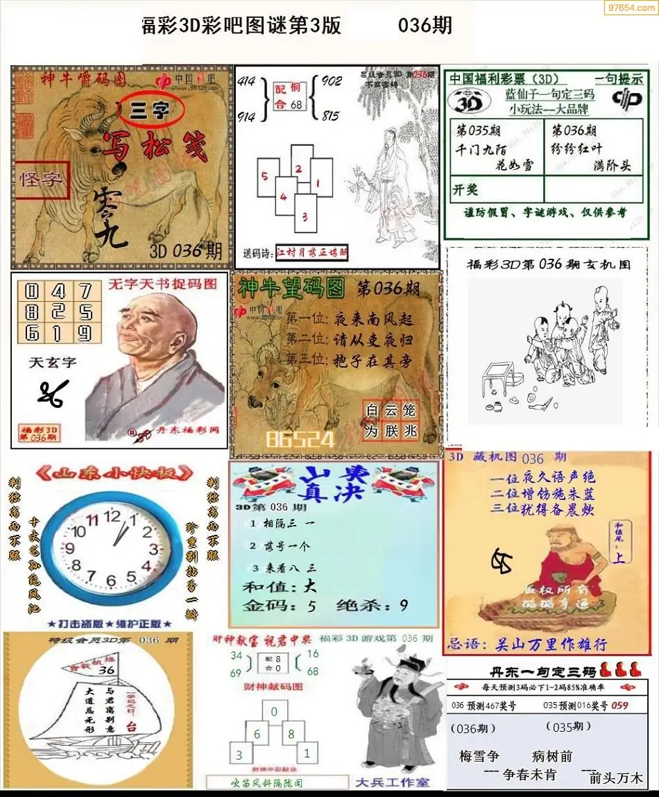 (3)2026036期3D预测总汇全图_福彩3d图谜字谜总汇