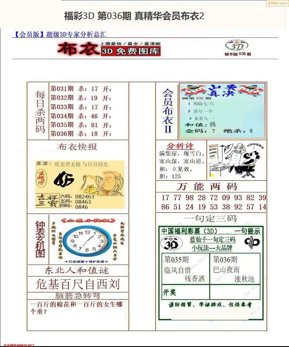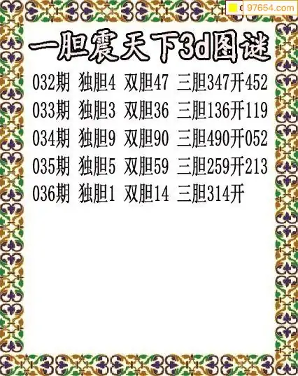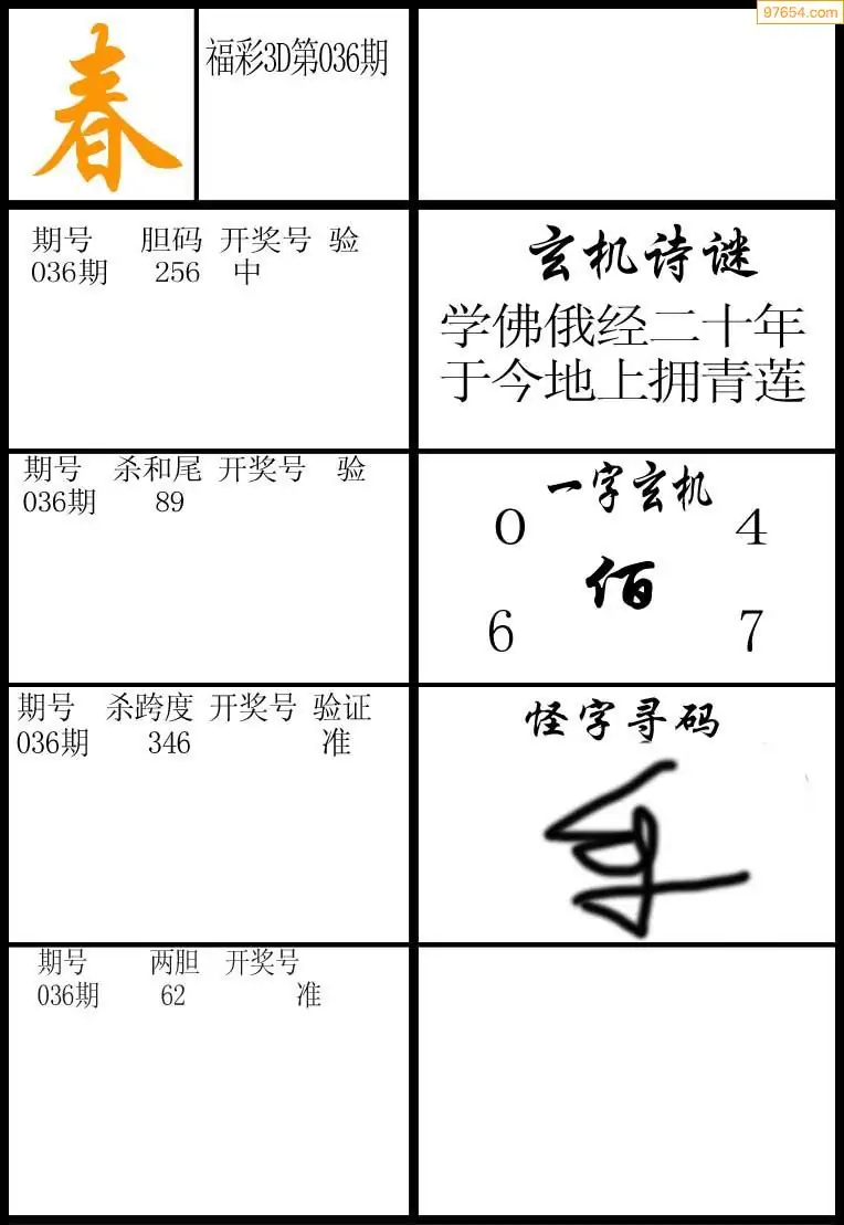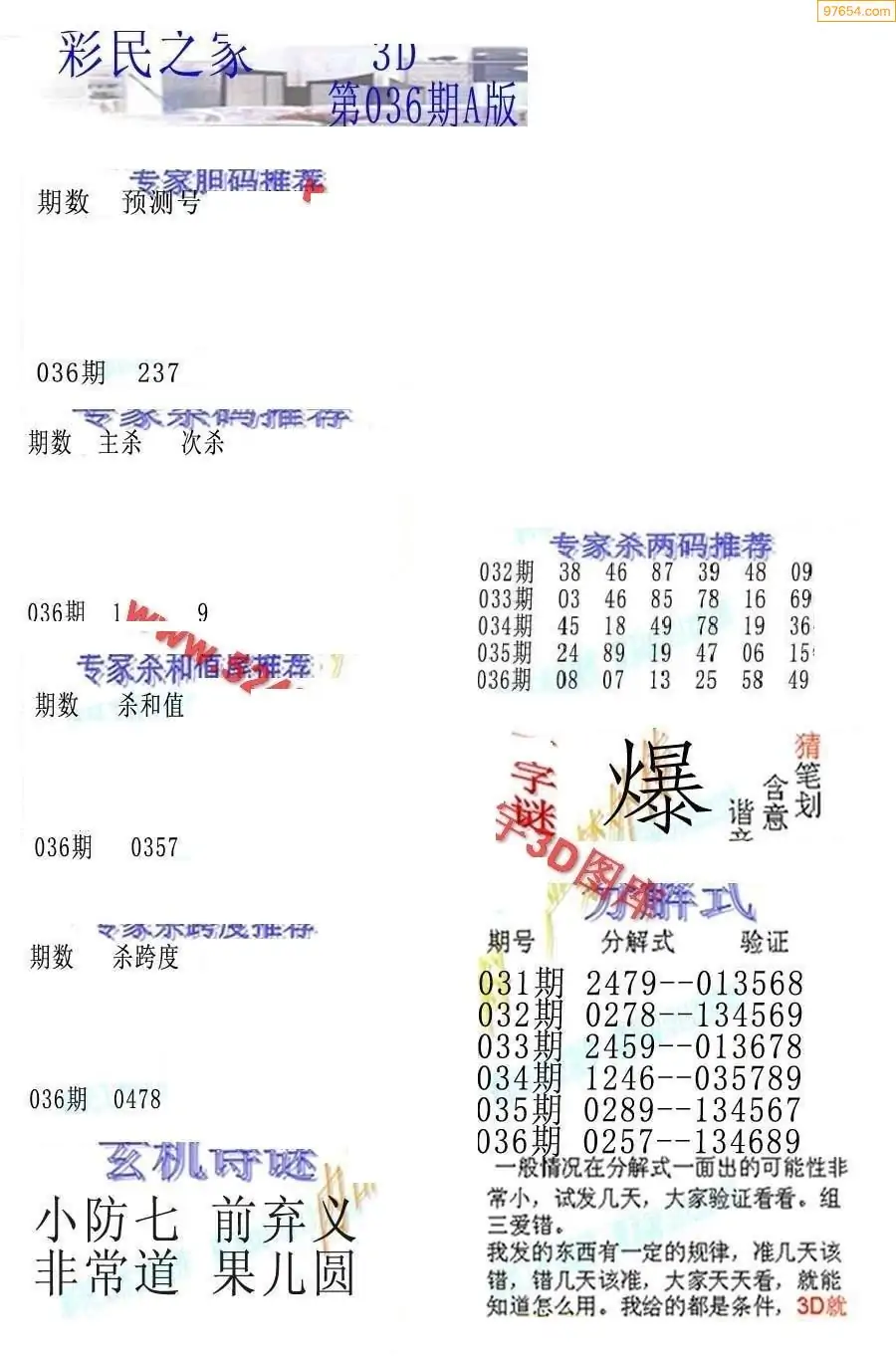 (3)2026036期3D预测总汇全图_福彩3d图谜字谜总汇